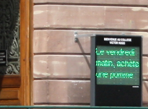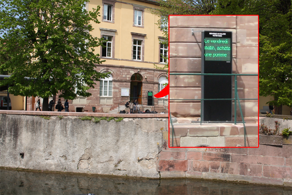 Lors de nos dernières vacances en Alsace, on est passé par hasard devant une école à Colmar qui arboré cet étrange message sur un beau panneaux publicitaire dans l’enceinte de l’école...